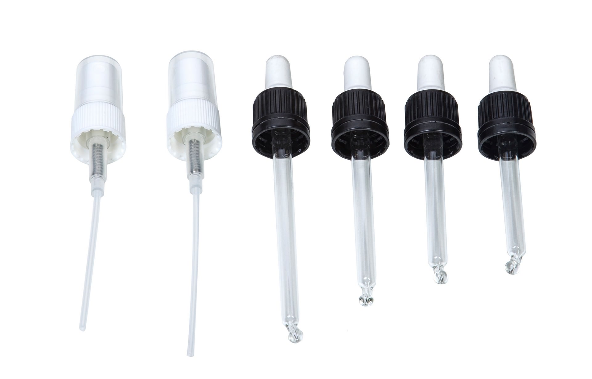 Za stekleničke obstajajo poleg klasične kapalke (vključena v ceno artikla), še dodatna različna zapirala, kot so razpršila ali pipete (ni vključeno v ceno artikla).